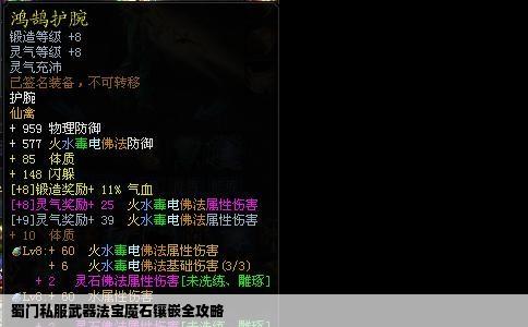在蜀门私服游戏中,武器法宝的魔石镶嵌是提升战斗力的重要一环。本文将详细介绍如何在武器法宝上打上四个魔石,包括具体步骤、注意事项以及魔石的选择策略。